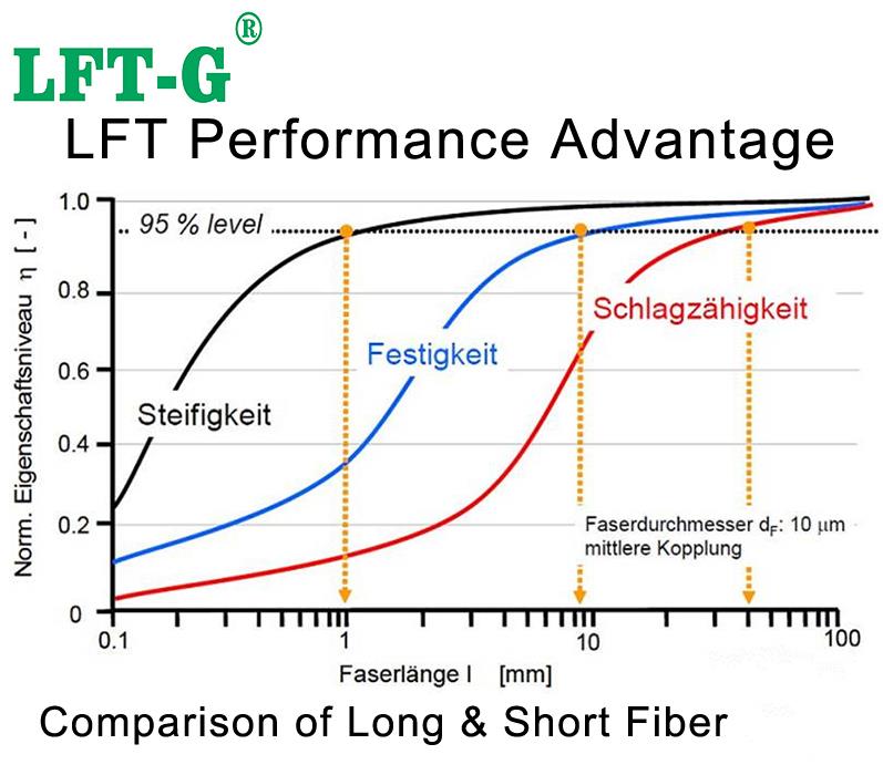 Piv rau feem ntau siv cov iav fiber ntau reinforced plastics, ntev iav fiber reinforced yas tau tripled hauv flexural modulus, plaub lub sij hawm qhov feem zog thiab yuav ua tau -30 ℃ environment unchanged. LFRT tuaj yeem ua tau raws li cov kev xav tau ntawm ntau hom kev siv cov neeg kawg. Vim nws txoj kev siab tawv, lub cev nyhav, kev tiv thaiv tsis muaj zog, ua haujlwm tsawg thiab haujlwm ua haujlwm zoo, LFRT tuaj yeem yoog rau ntau txoj hauv kev ua kom nws ua lwm yam zoo rau cov hlau.